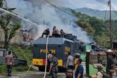 Quick Respon Polri Bantu Padamkan Kebakaran di Kodam Lama Jayapura