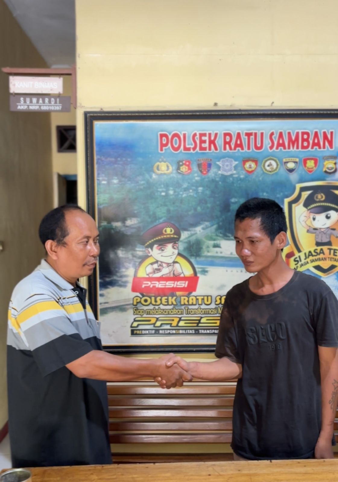 BENGKULU – Suasana haru mewarnai penyelesaian perkara pencurian melalui pendekatan restorative justice di Polsek Ratu Samban, Kota Bengkulu. Terlapor berinisial Syarif, warga Simpang Kandis, tak kuasa menahan air mata saat bersalaman dan meminta maaf di hadapan ayahnya serta pelapor dalam proses perdamaian yang digelar di Mapolsek Ratu Samban.