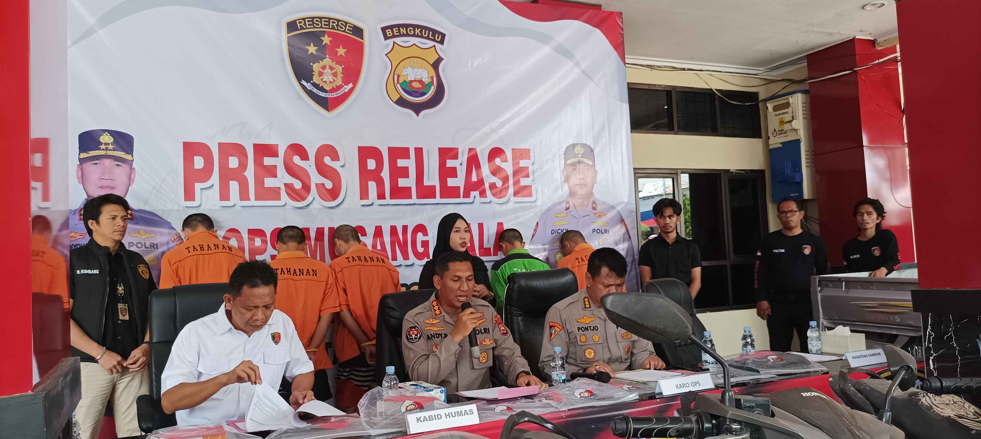 Dari hasil operasi, Satgas Gakkum Polda Bengkulu berhasil mengamankan lima tersangka, masing-masing berinisial BI, PAT, RU, TTG, dan YU. Polisi juga menyita sejumlah barang bukti berupa lima unit sepeda motor serta satu unit mobil Daihatsu Granmax Pickup warna silver metalik dengan nomor polisi BE 8258 UK.
