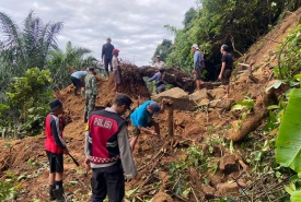 Tanah Longsor tutup ruas jalan, Polsek Semidang Alas…
